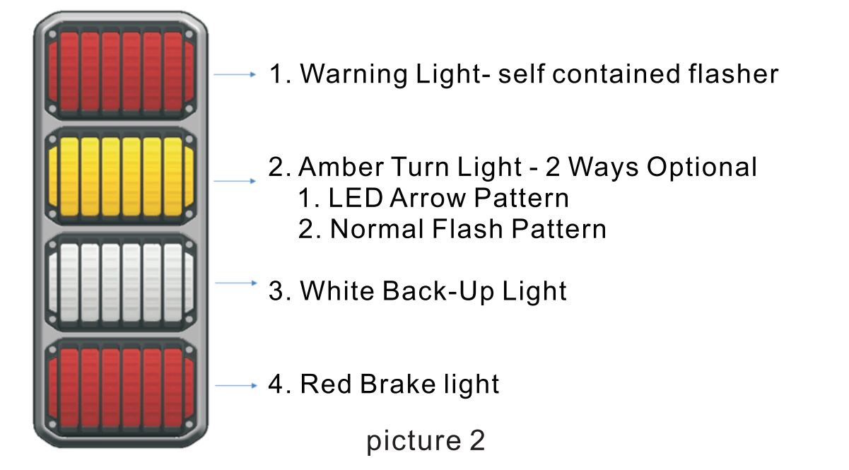 Kūʻai ʻia e like me nā ʻāpana hoʻokahi - ʻO ka hui pū ʻana me ka ʻōlelo aʻo LED, Brake / Tail, Turn / Turn Arrow, Back-up Light