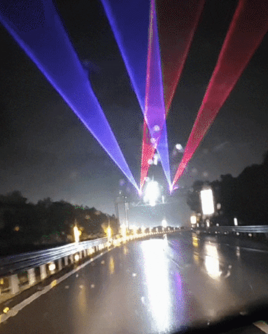 Благодаря мощному лазеру мощностью 40 Вт, свет прозрачный и яркий, обладает высокой яркостью и большой дальностью, обеспечивая дальний предупреждающий эффект. В суровых погодных условиях трихроматическая лазерная система, предотвращающая усталость, действует как целеуказатель, обладая высокой яркостью и высокой проникающей способностью, указывая направление и обеспечивая более эффективное предупреждение.