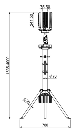 ---Высоту головки светильника можно регулировать с помощью пяти подъемных штанг, при этом максимальная высота подъема достигает 4 м, что может удовлетворить потребности в освещении различных мест.