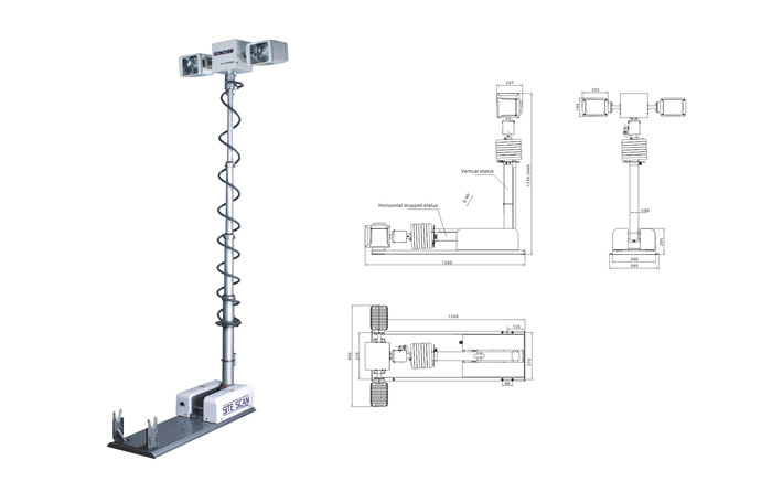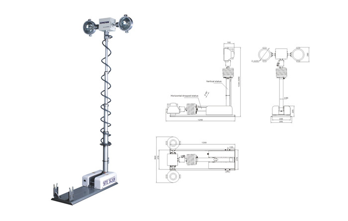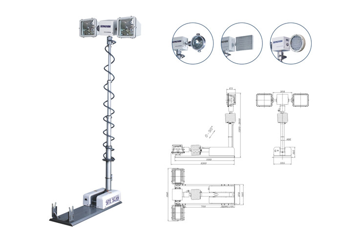 The Site scan 2.5m series contains four segment mast which can raise the lighting tower to be 2.5m to realize a larger lighting area, making it perfect for the vehicles like commanding, lighting, rescue and fire..