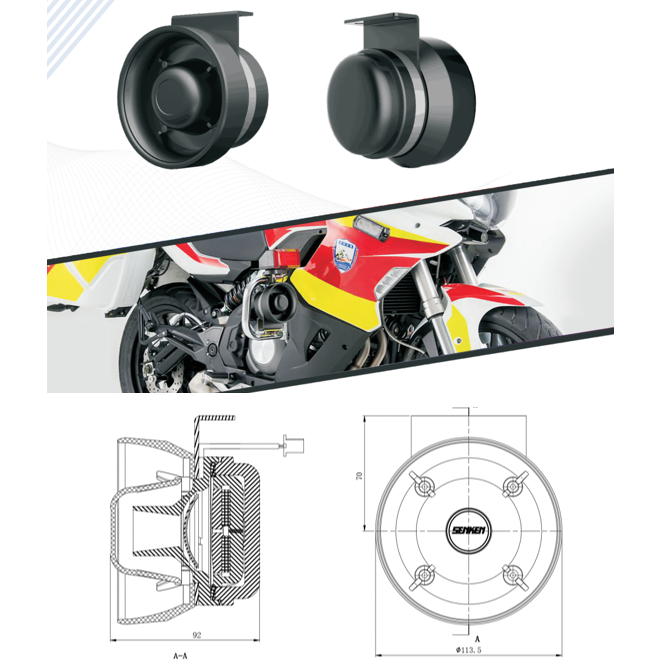Fabricado en aleación de aluminio, carcasa de alta resistencia, ligero y resistente a la corrosión, Potencia 50W, Nivel de compresión de sonido 119dB.