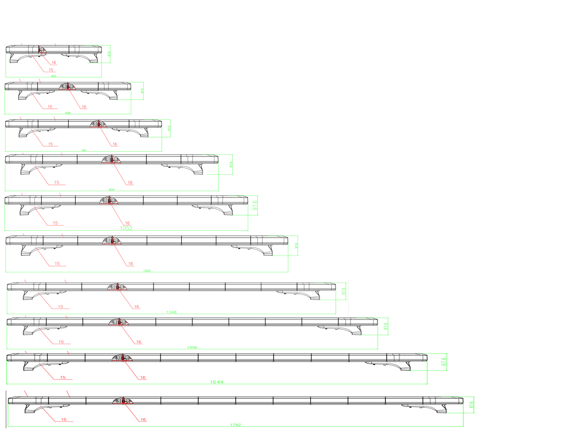 Length optional with 450mm, 605mm, 756mm, 904mm, 1052mm, 1200mm, 1348mm, 1496mm, 1644mm, 1792mm.