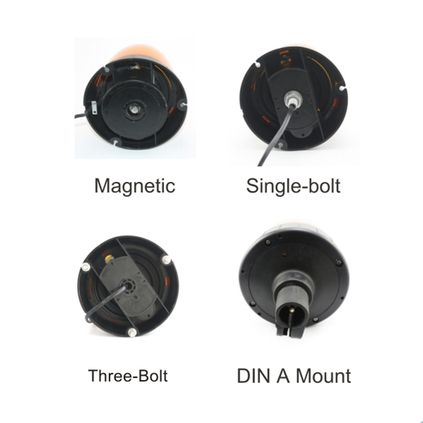 Single-bolt,three-bolt,magnetic and pole mount options are available to meet needs of different mounting applications. The pole mount type features a DIN A mount specification which provides a standard mounting socket for all type of vehicle internationally.