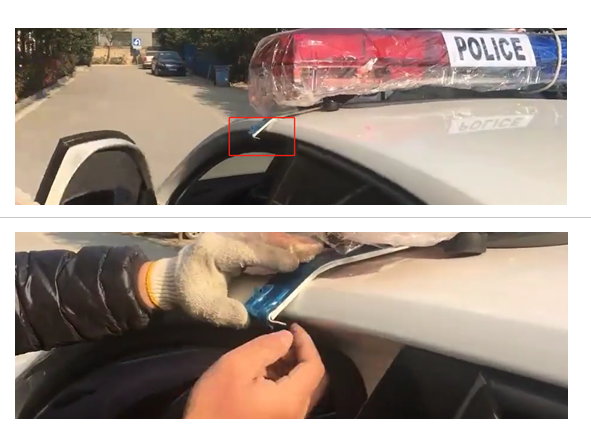 1. When installing, first place the long row of warning lights at a suitable position on the roof of the car.