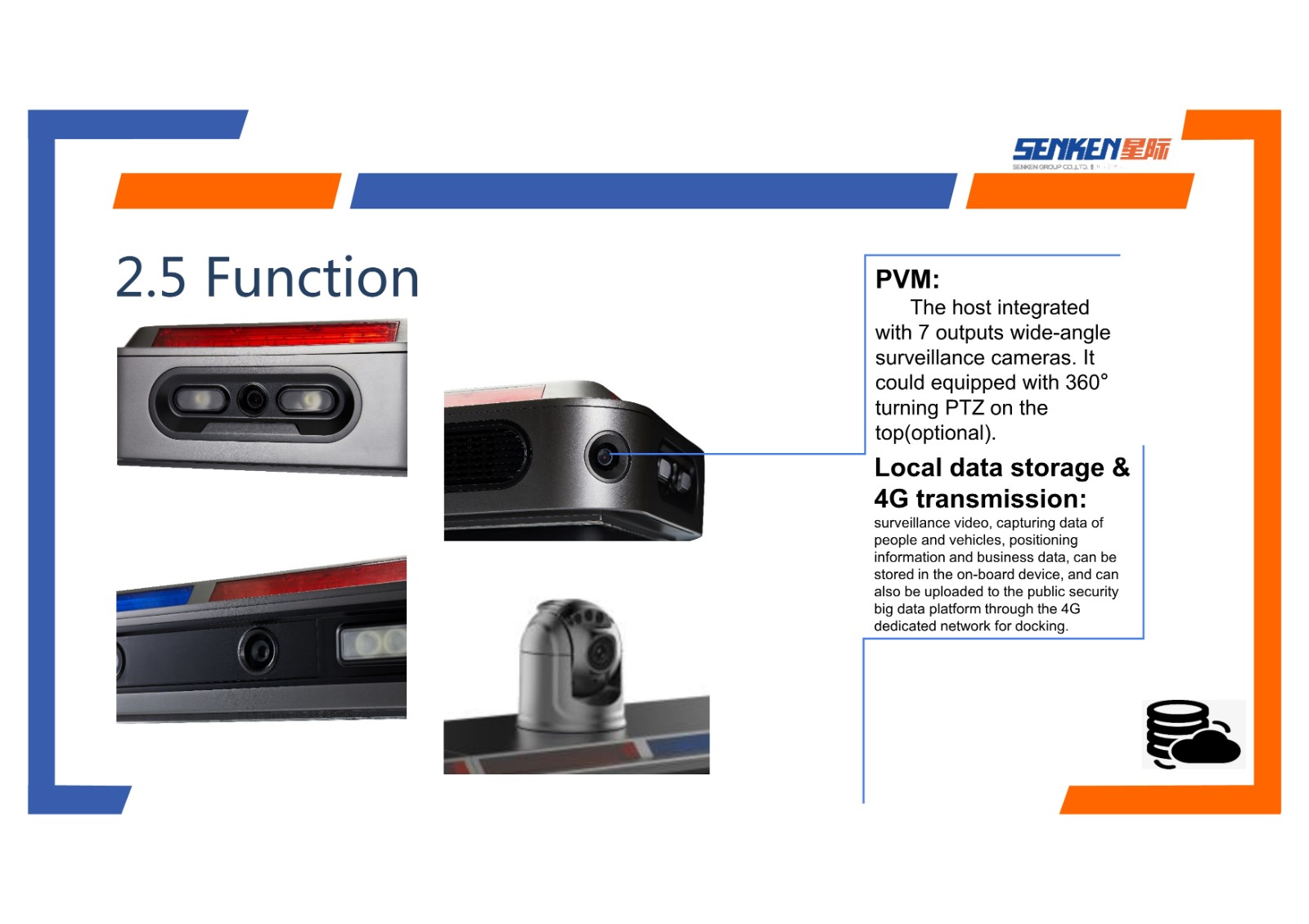 Surveillance video, capturing data of people and vehicles, positioning information and business data, can be stored in the on-board device, and can also be uploaded to the public security big data platform through the 4G dedicated network for docking.
