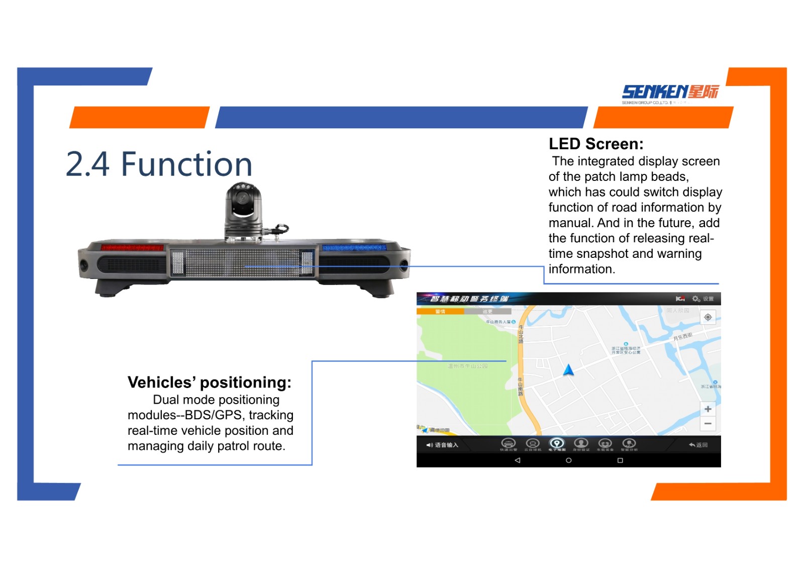 Dual mode positioning modules–BDS/GPS, tracking real-time vehicle position and managing daily patrol route.