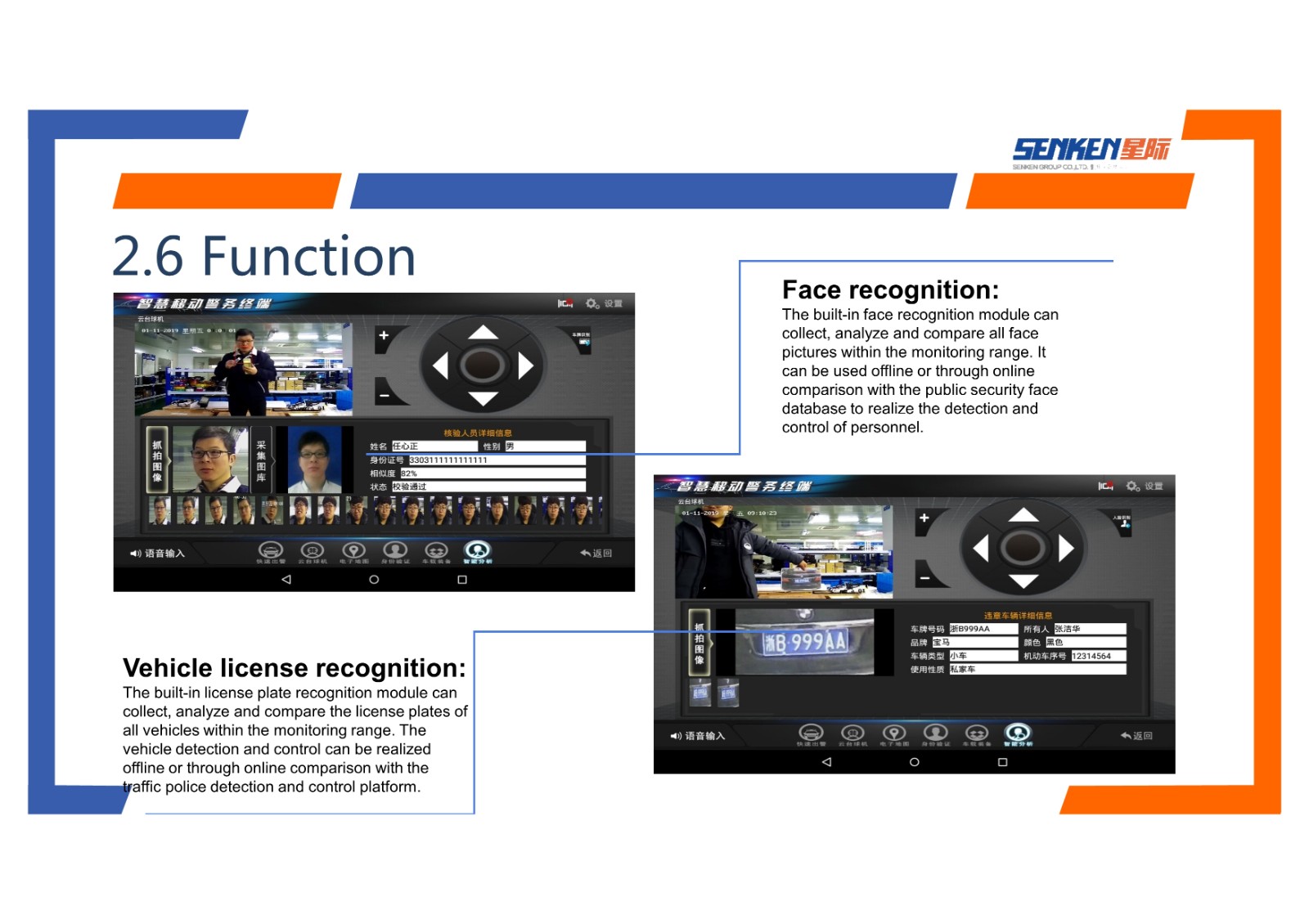 The built-in face recognition module can collect, analyze and compare all face pictures within the monitoring range. It can be used offline or through online comparison with the public security face database to realize the detection and control of personnel.