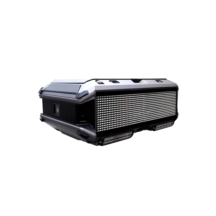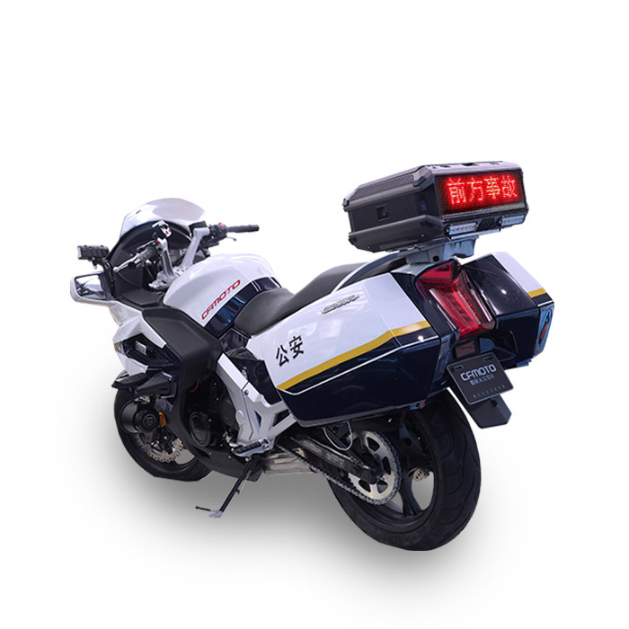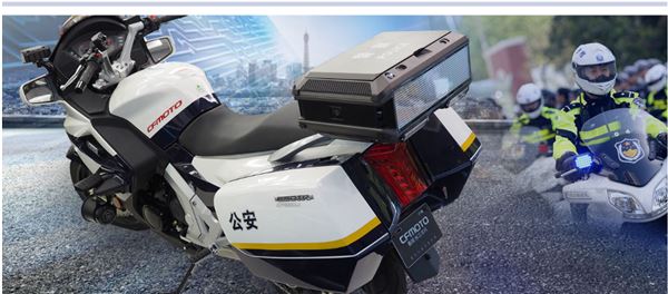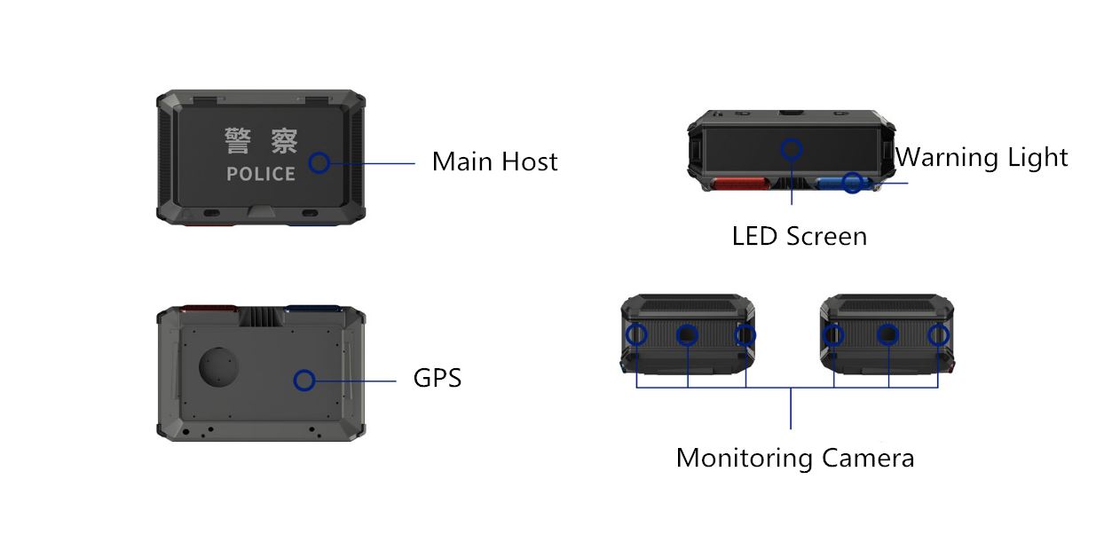 The motorcycle panoramic forensics system adopts an integrated overall design. The surveillance camera is embedded in the tail mainframe, and the external LED display design can be used to display the warning slogan. The system can perform daily operations through the display screen and controller on the host computer, and has a Bluetooth communication module, which can control the device through voice commands during driving, and obtain data information captured by the device.
