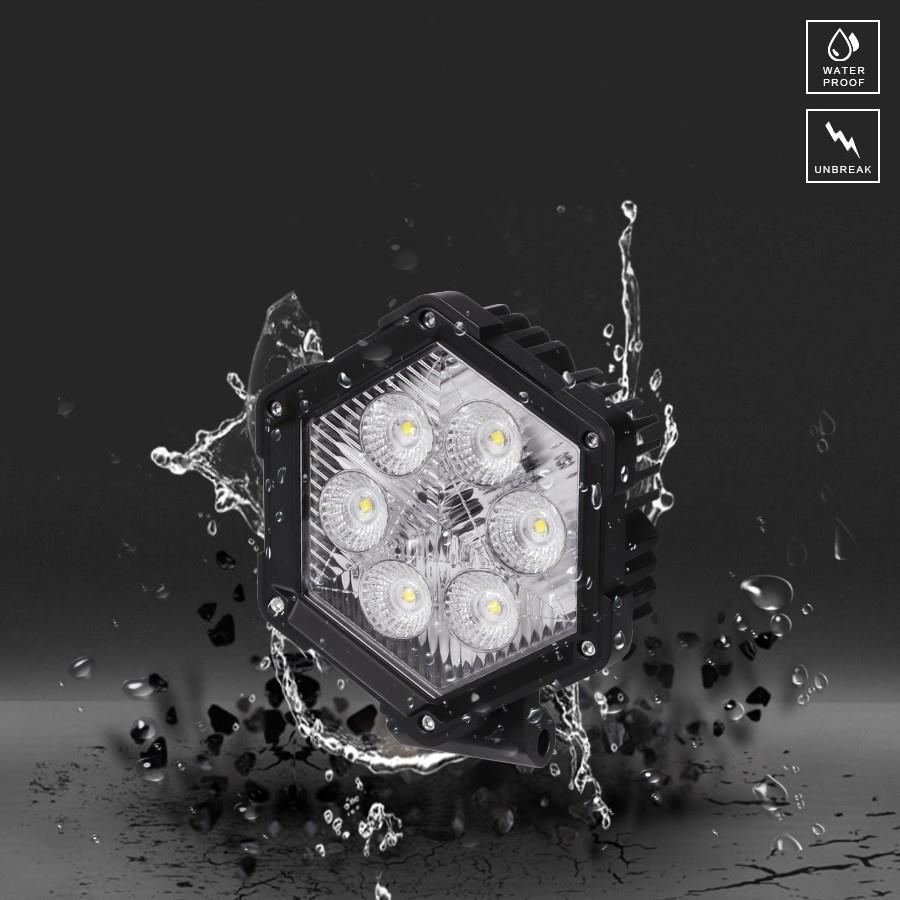 CHARMING-30 is mainly made of hexagonal design, greatly shows the industrial style of the product. Combined with the high-transparent and double-lens integrated mask, it can even reflect the crystal clear texture under the sunlight. Massive use of geometric elements makes it applicable for various types of off-road and special vehicles. Moreover, with excellent ductility, installing by arrays or single rows can have different effect.