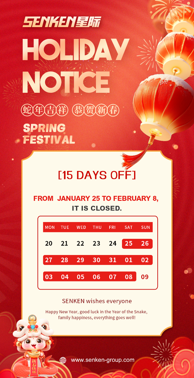 Please note that Senken Spring Festival period is from Jan 25th to Feb 8th .