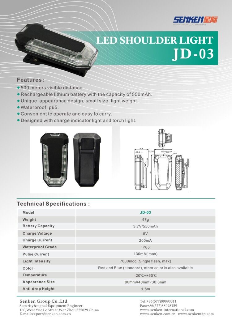 Luz de advertência de ombro LED JD-01/JD-02/JD-02A/JD-03
