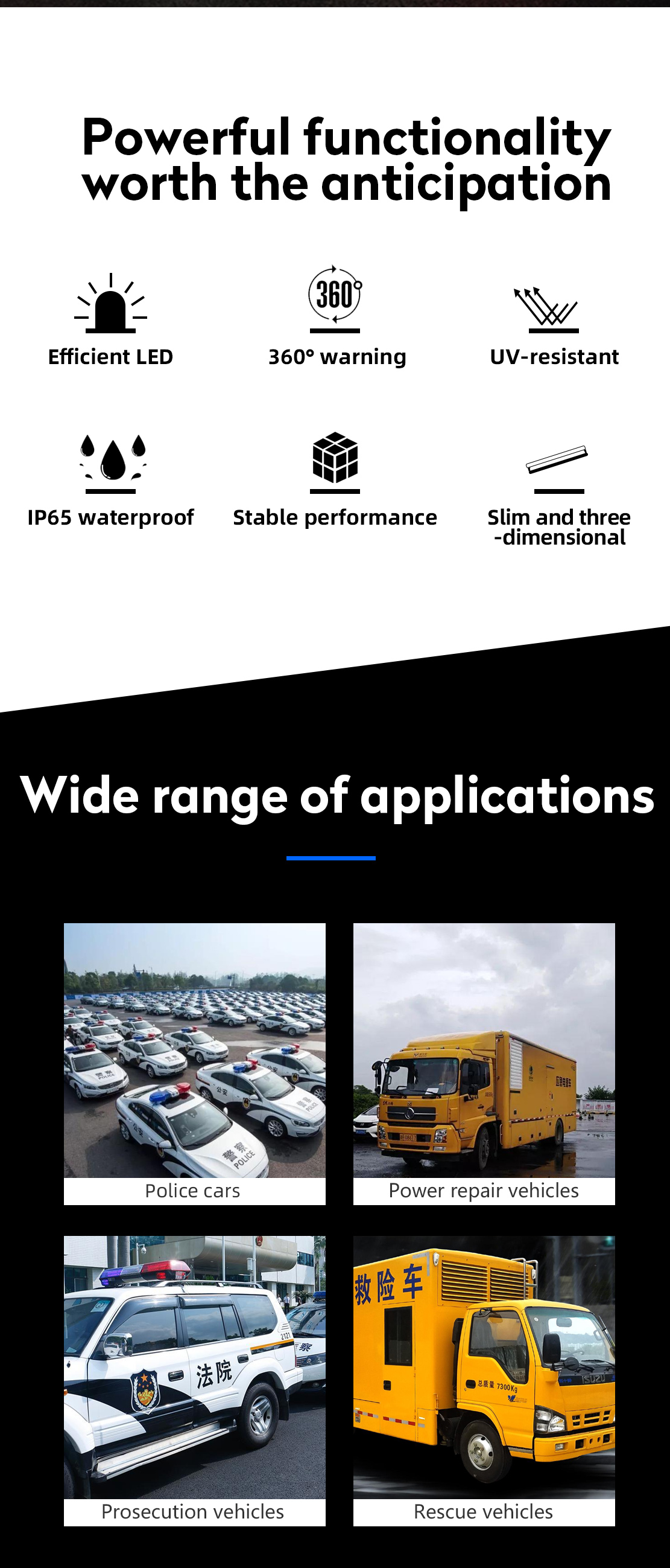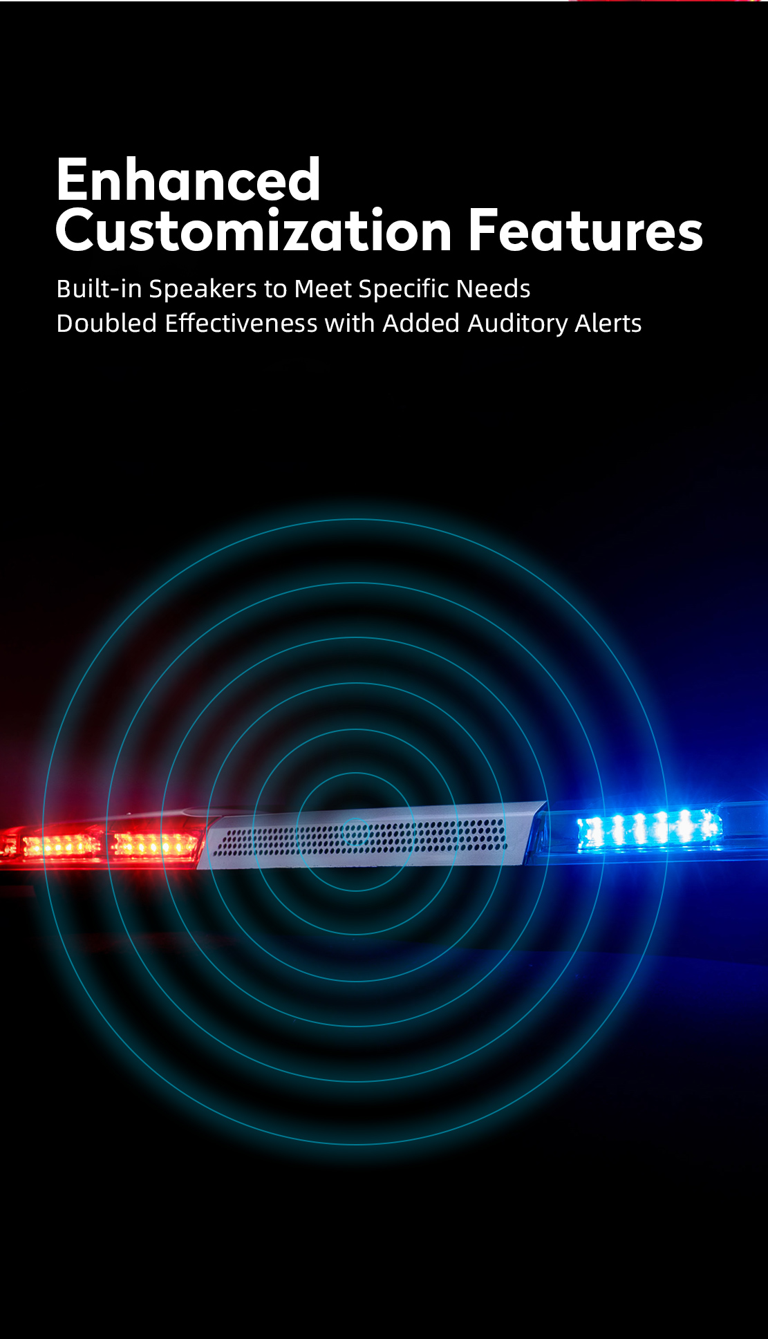 A série TBDA2 da barra de luz LED SPARKLER é uma barra de luz totalmente nova, totalmente projetada e produzida na Senken. A barra de luz tem tamanho padrão de 122 cm (48"), podendo ser personalizada em outros tamanhos. A seção central conta com cabeças de luz LED, assim como o alto-falante com um revestimento. Muito bonita e com alto rendimento luminoso, a barra de luz pode ser usada em qualquer veículo de emergência, como polícia, bombeiros, ambulâncias e veículos off-road, etc.