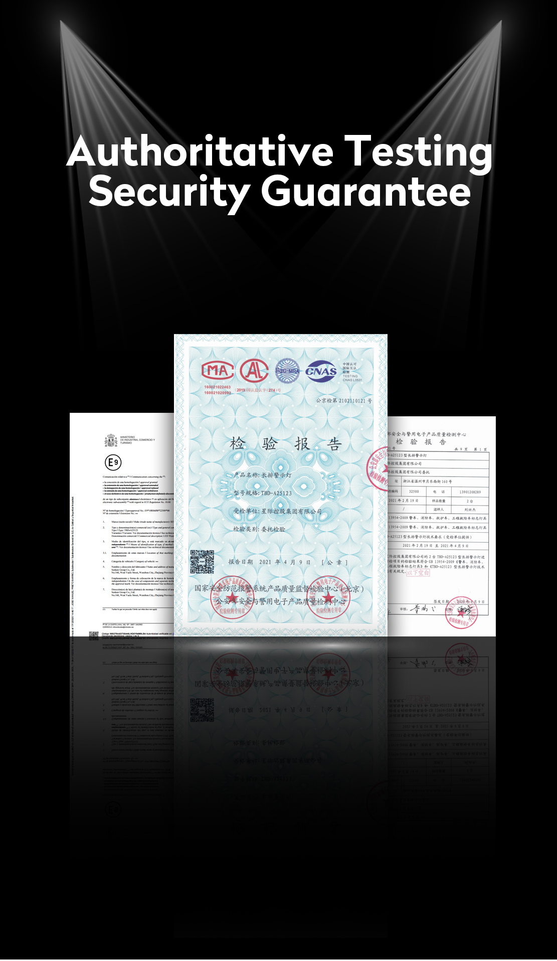 R3: Fornecemos certificados E-MARK, SAE, ROHS e NIJ para diferentes produtos, de acordo com o país. Para certificações empresariais, temos ISO9001, IS140000 e ISO180000.