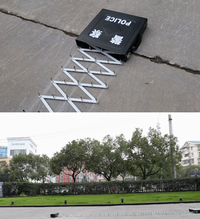 Você também pode usar tração manual, no momento da chegada do veículo, o uso da corda de tração para expandir rapidamente o bloqueio da estrada, bloqueando o carro de forma invisível.