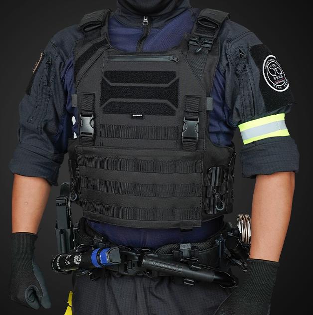 Este traje antifaca integra um colete refletivo, um traje antifaca e componentes de proteção na cintura. O painel tático de proteção na cintura pode ser substituído de acordo com as necessidades da tarefa e pode ser equipado com capas para bastões de puxar rápido, capas para lanternas, capas para gás lacrimogêneo, capas para algemas e luvas anticorte.