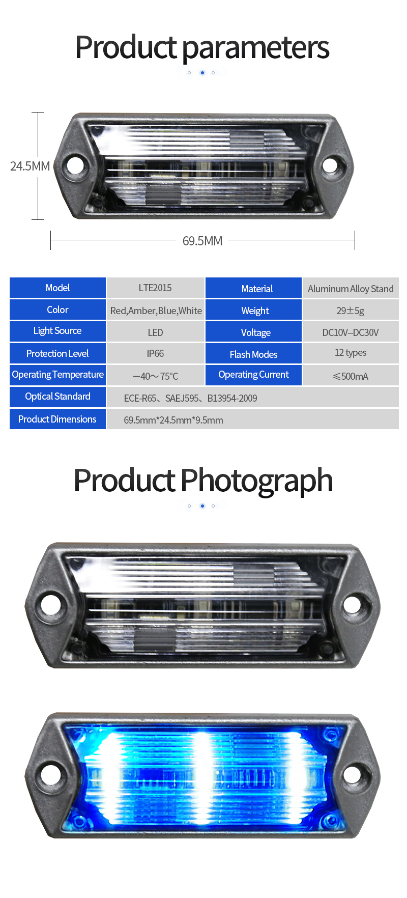 Доступно в красном, синем, янтарном и белом цветах.