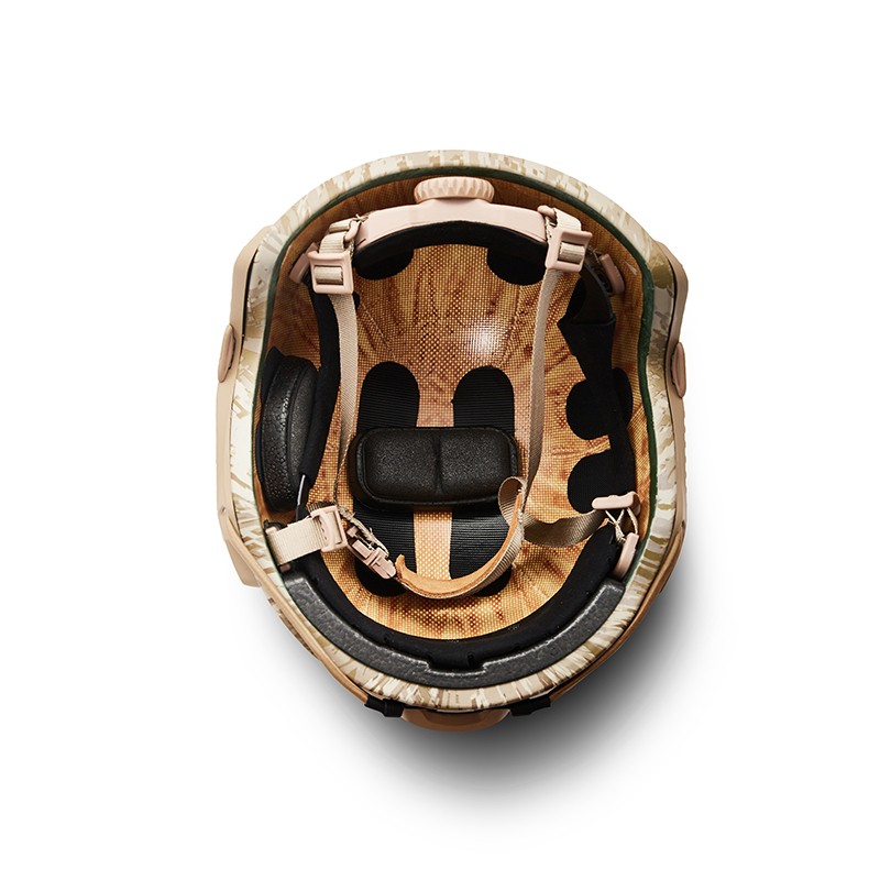 - По бокам и спереди шлема установлены тактические направляющие, а также можно добавить приборы ночного видения.
