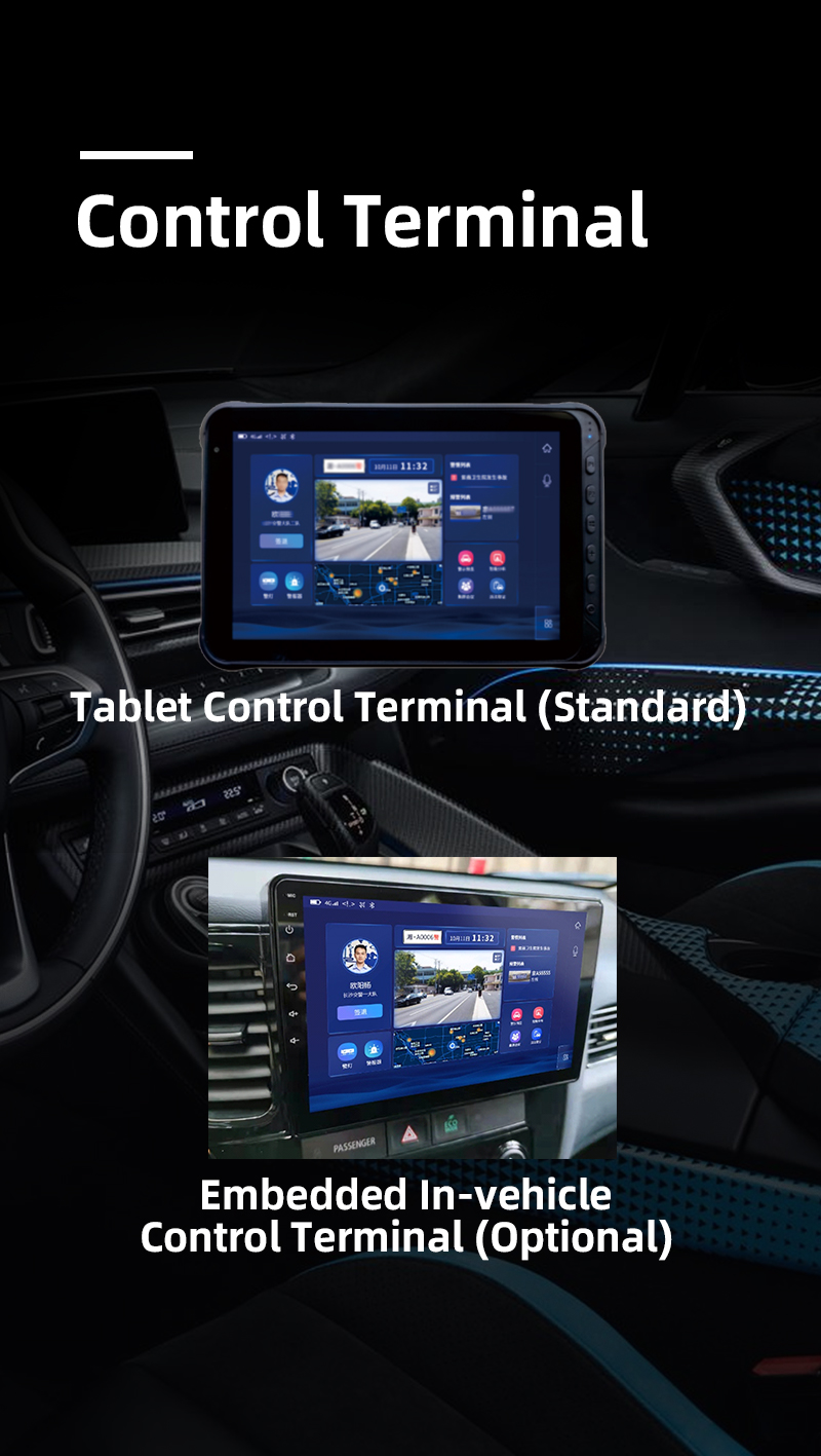 Терминал управления транспортным средством: Система Android, 8-ядерный процессор, 4 ГБ памяти, 64 ГБ встроенной памяти, 10-дюймовый емкостный сенсорный экран HD, складной кронштейн для солнцезащитного козырька