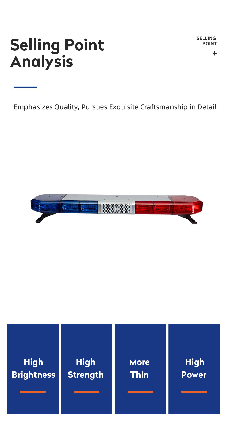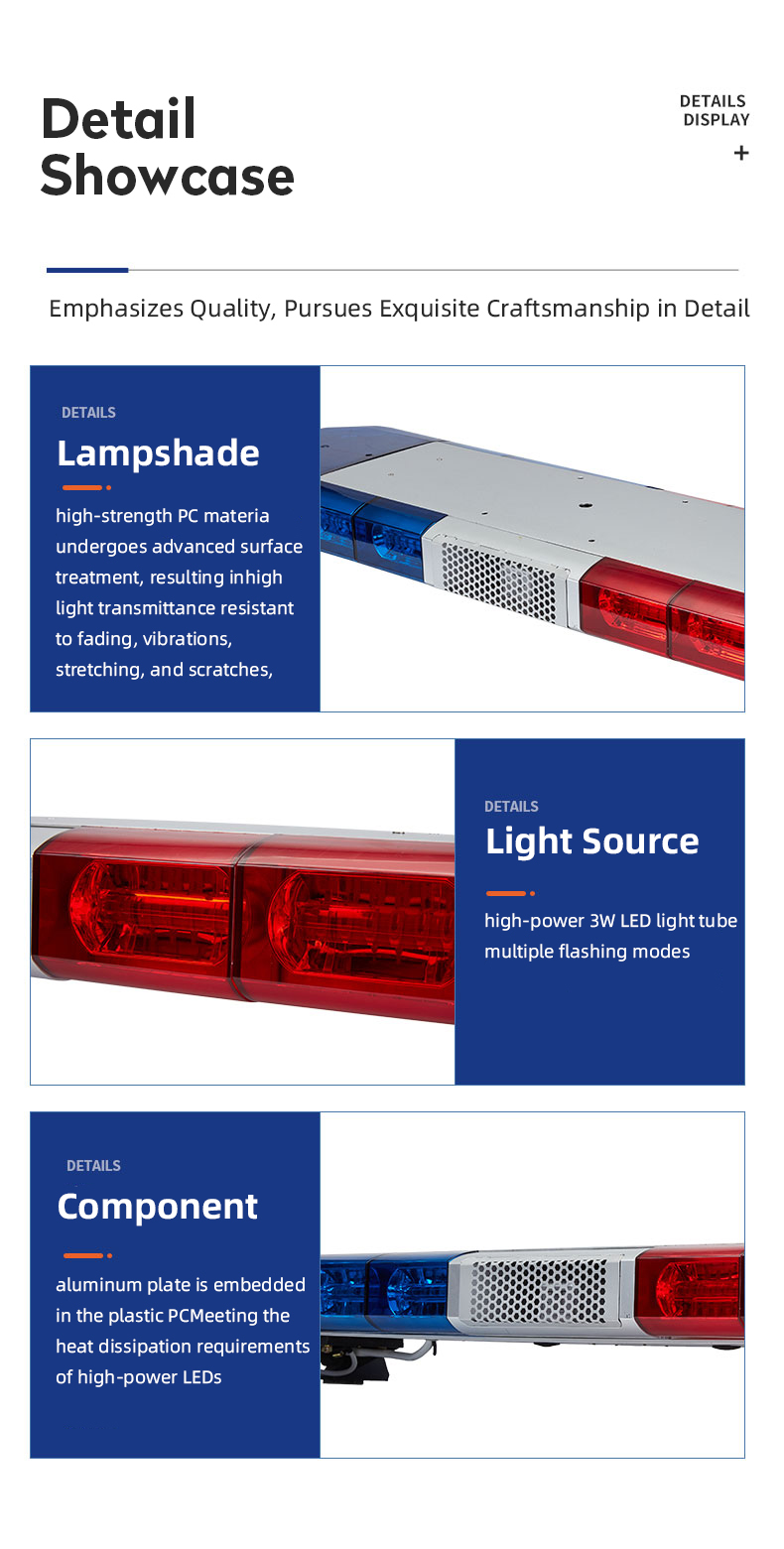 ·Multi-functional warning light intergrated with LEDs warning modules, LED screen displays and alert functions;
