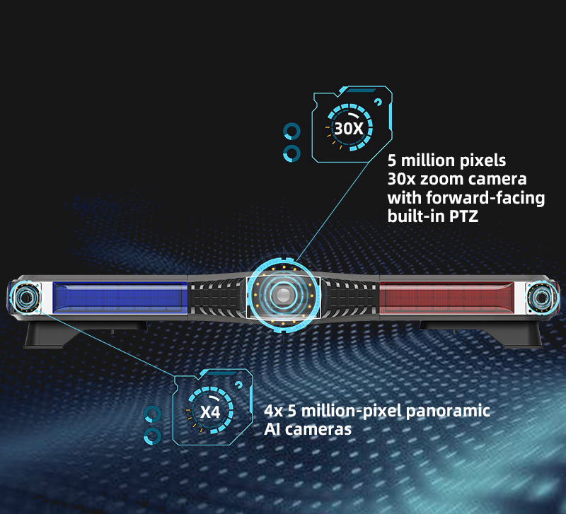 It is fully new compact design of smart lightbar integrated with lights, sirens,cameras and control pad, with functions of image/video wireless transmission, ideally for the application of traffic police force to achieve the efficient patrol duty, to enable the command center to quickly grasp on site police force situation and reliable data proof. ANPR and speed enforcement could be realized based on SDK developed tools according to different countries policies.